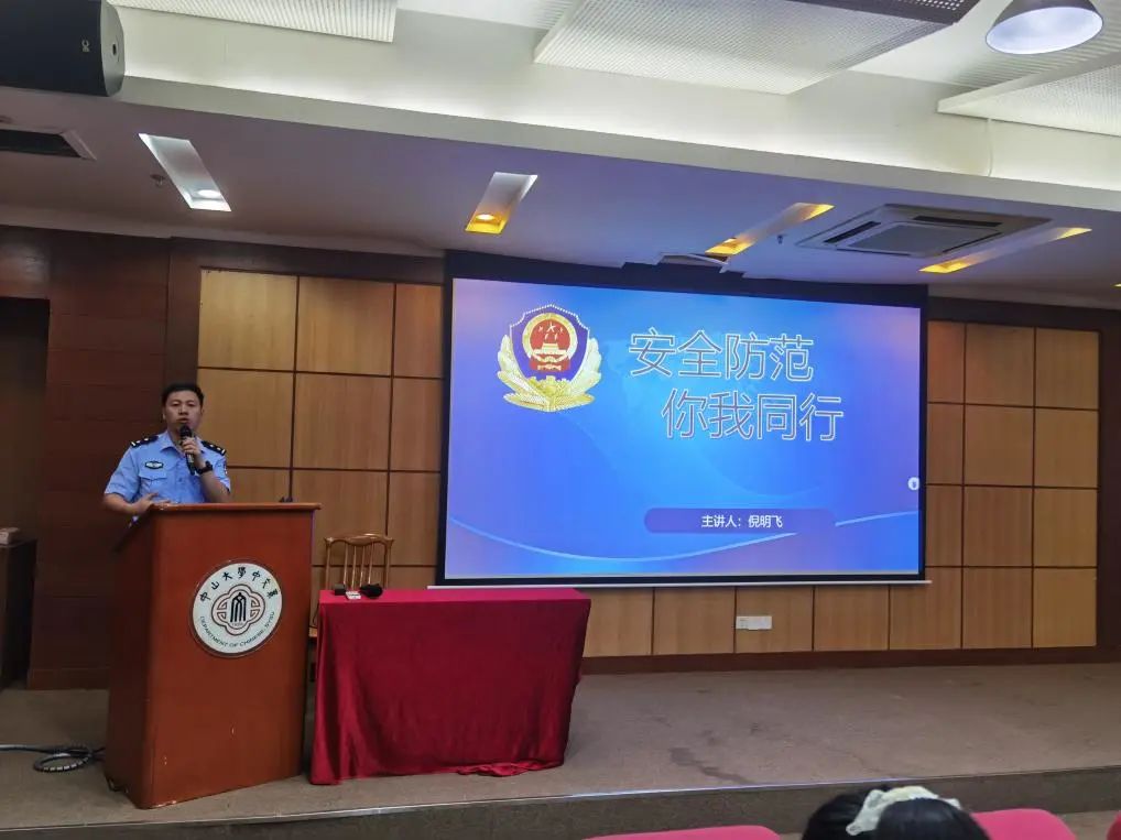 “居安思危,思则有备,备则无患。”为进一步提升学生安全意识,我系与新港派出所联动,于9月11日上午开展了2023级新生安全教育。本次安全教育专题培训讲座由新港派出所四级警长倪明飞警官主讲,中文系全体新生参加,讲座由党委副书记谢金华老师主持。